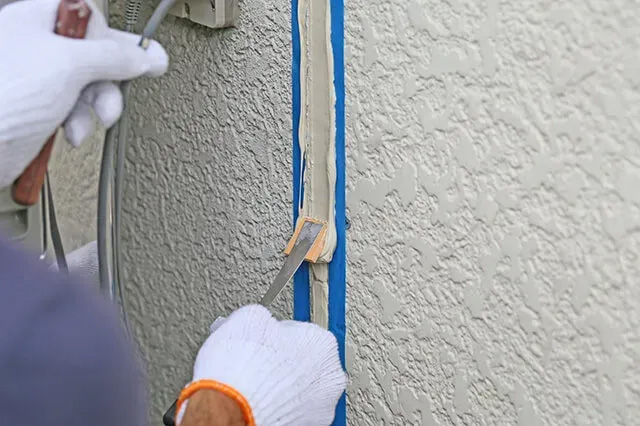 外壁塗装の工程の中でも、仕上がりや耐久性に大きく影響するのが下地処理であり、施工品質の差が出やすい工程です。株式会社ペイントプラザでは、劣化した目地のコーキングは全面打ち替えが基本で、ひび割れがあれば、Uカット補修やフィラーによる補修を素材に応じて実施します。