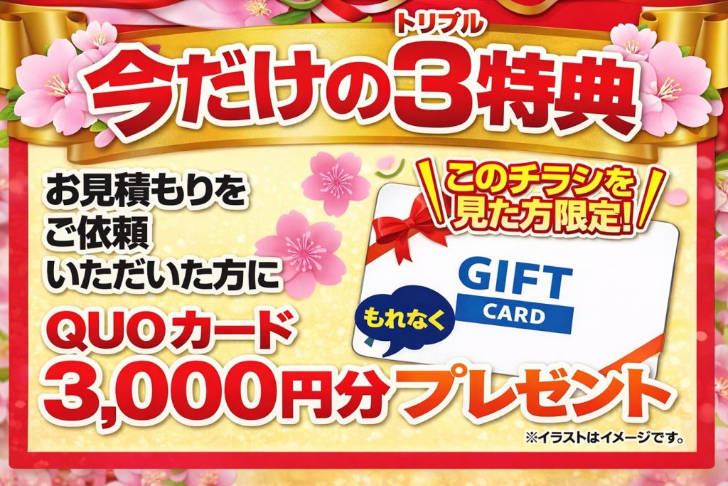 ・お見積もり特典:QUOカード3,000円分プレゼント