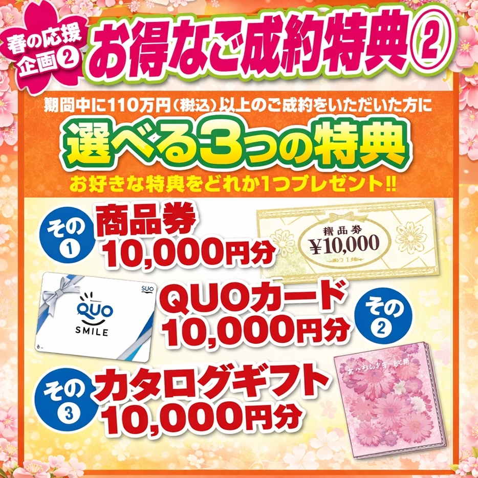※ご成約特典は110万円(税込)以上のご成約が対象となります